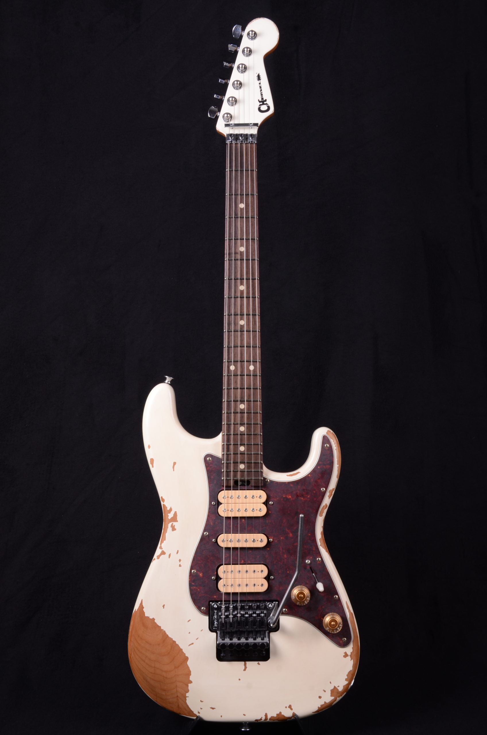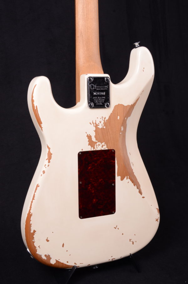 The distressed finish gives this Charvel axe the look of a road warrior that has many more glorious miles ahead of it.