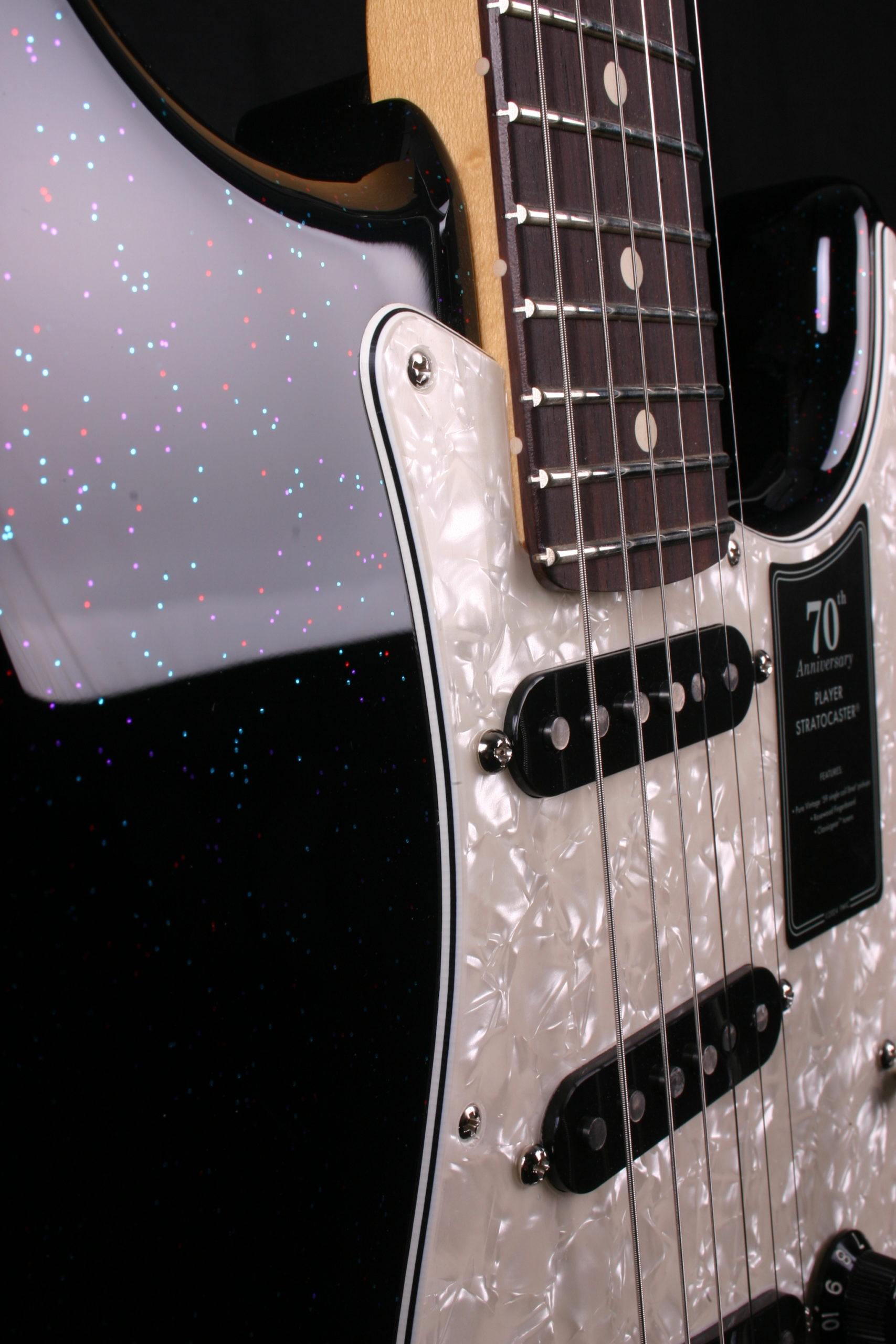 Bühne frei für die 70th Anniversary Stratocaster® Collection! Diese Serie feiert sieben Jahrzehnte unsterblichen Ton und einzigartiges Design. Sie ist unsere Liebeserklärung an die Strat®, die mit ihrem unverwechselbaren Klang und Shaping zur Ikone der Musikwelt wurde. Die 70th Anniversary Stratocaster ist ein Stück Fender® Geschichte, eine Gitarre mit Klasse, Eleganz und Rock’n’Roll Seele. Ihre hochentwickelten Features begeistern Vintage-Puristen ebenso wie progressive Musiker. Freu dich auf die 70th Anniversary Stratocaster Collection!