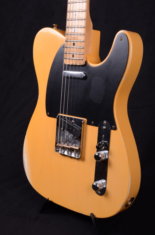 Other premium features include 21 medium vintage (47095) frets, Fat ’50s Tele® wiring, 3-way switch, single-ply black phenolic pickguard, ’51-’54 Tele® bridge with brass barrel saddles, vintage-style tuning machines, bone nut, disc string tree, deluxe hardshell case, strap and certificate of authenticity.