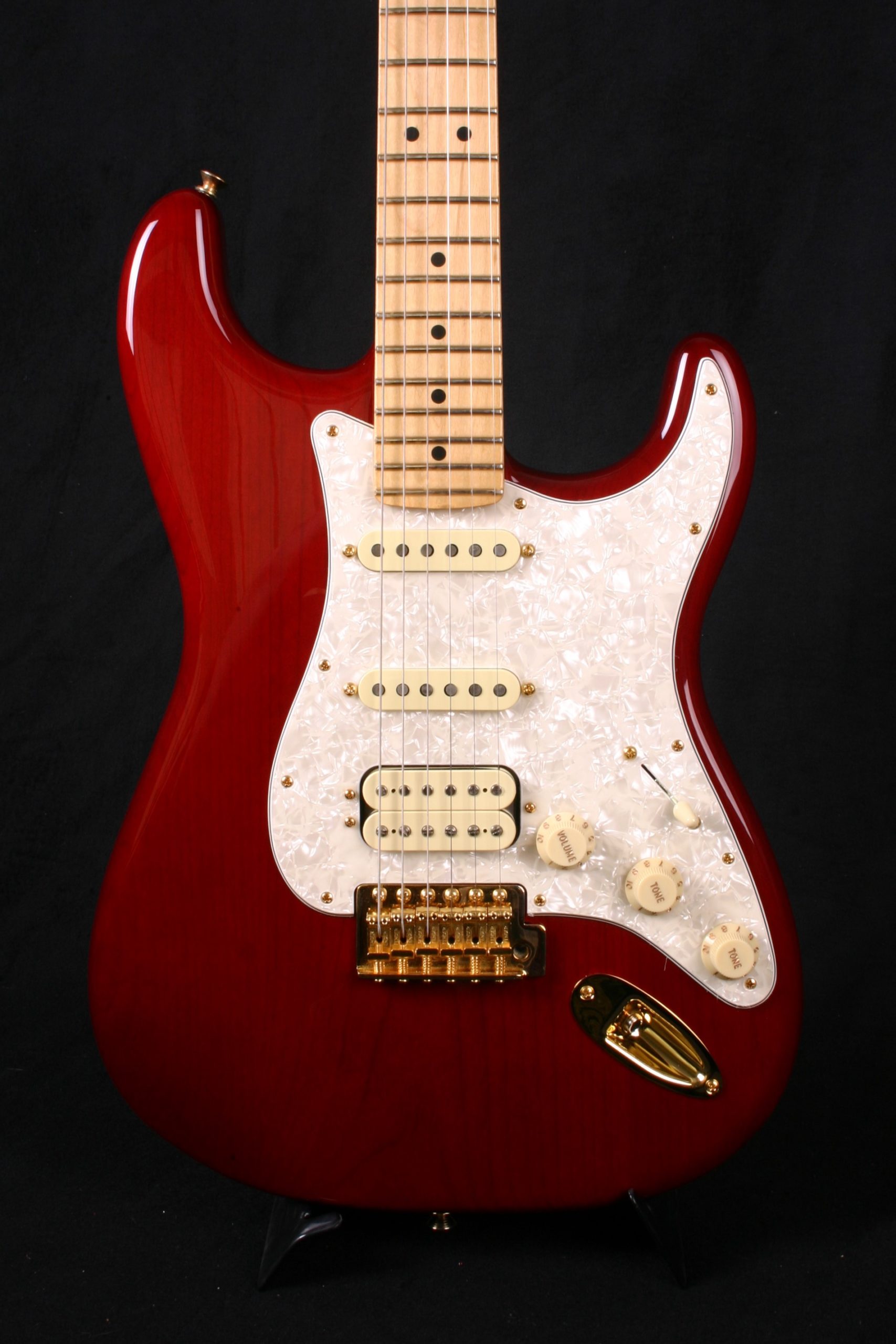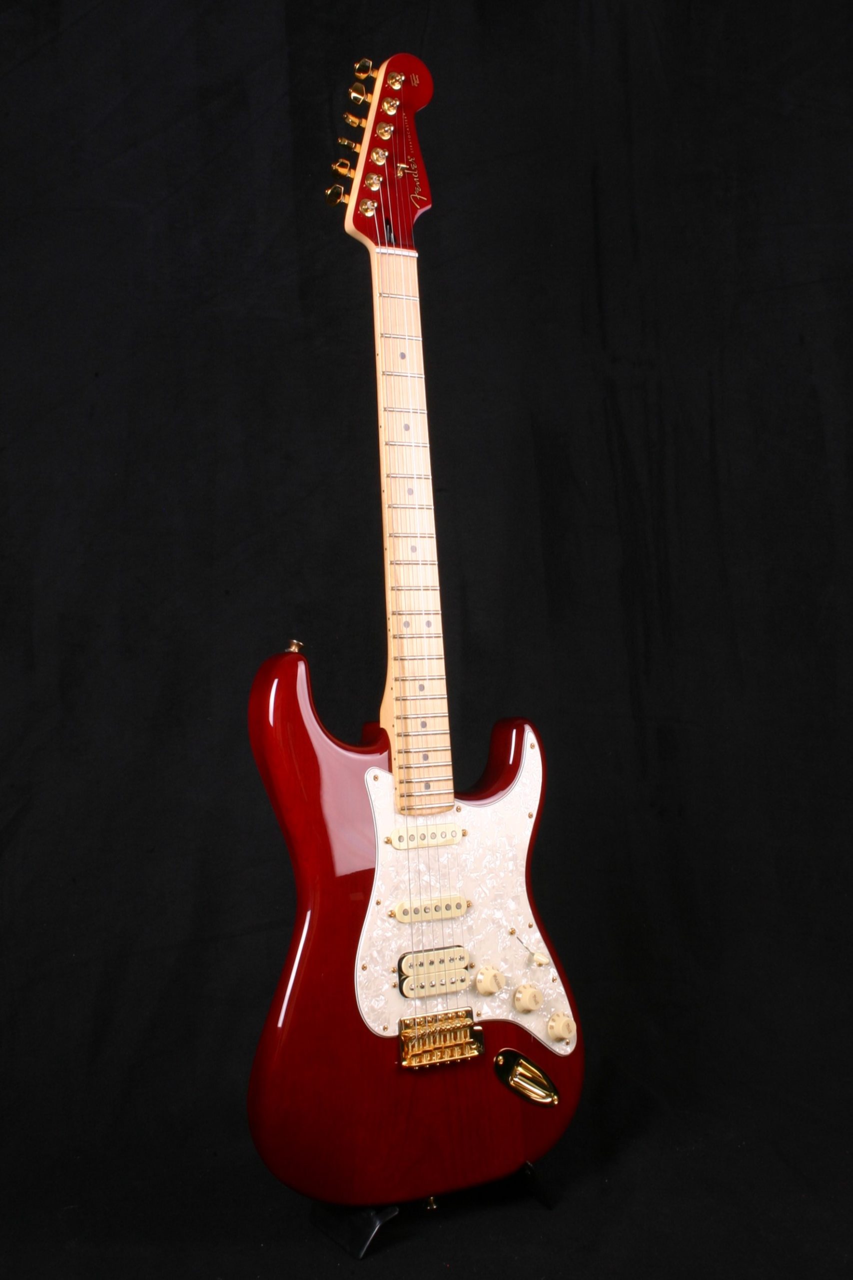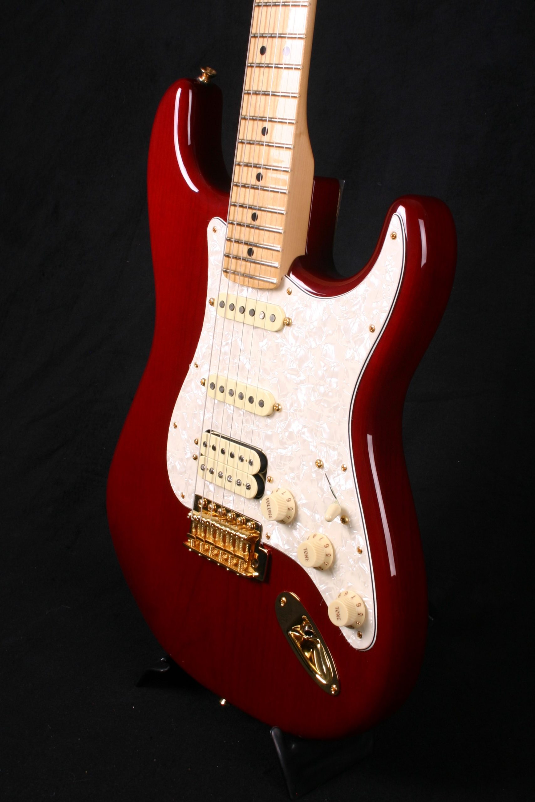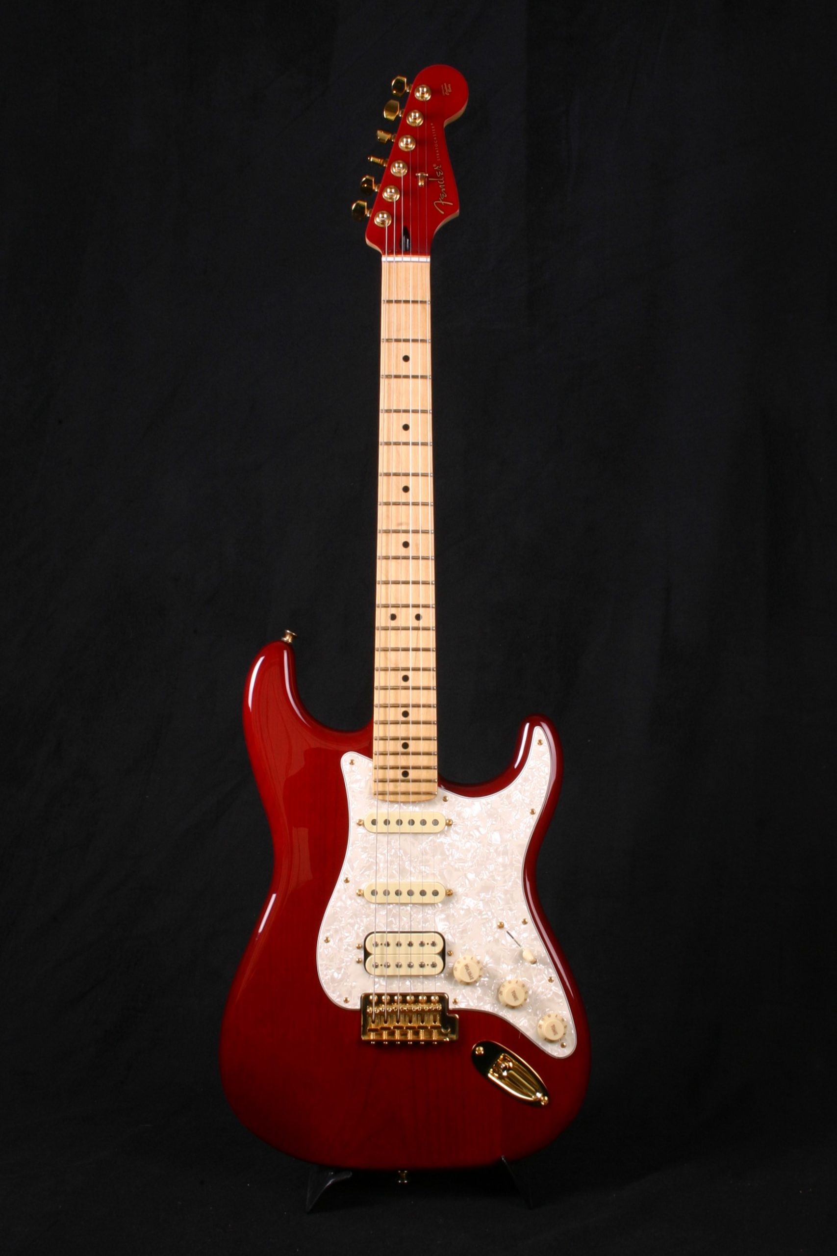 Mit tiefrotem Finish in Transparent Cherry und goldener Hardware wirkt die Tash Sultana Stratocaster® luxuriös und elegant. Auch ihre inneren Werte können sich sehen und hören lassen: Glitzerklar klingende Yosemite Strat Single-Coils und ein kraftvoller Double Tap™ Bridge-Humbucker verleihen der vornehmen Erscheinung eine facettenreiche, charakterstarke Stimme. Der Ahornhals im „Modern C” Profil hat 9.5” Griffbrettradius und ist mit 22 Medium Jumbo Frets bestückt. Das moderne Spielgefühl wird ergänzt durch ein synchronisiertes Tremolo im Vintage-Stil, mit dem sich klassische, fein nuancierte Strat Vibrato-Effekte spielen lassen.