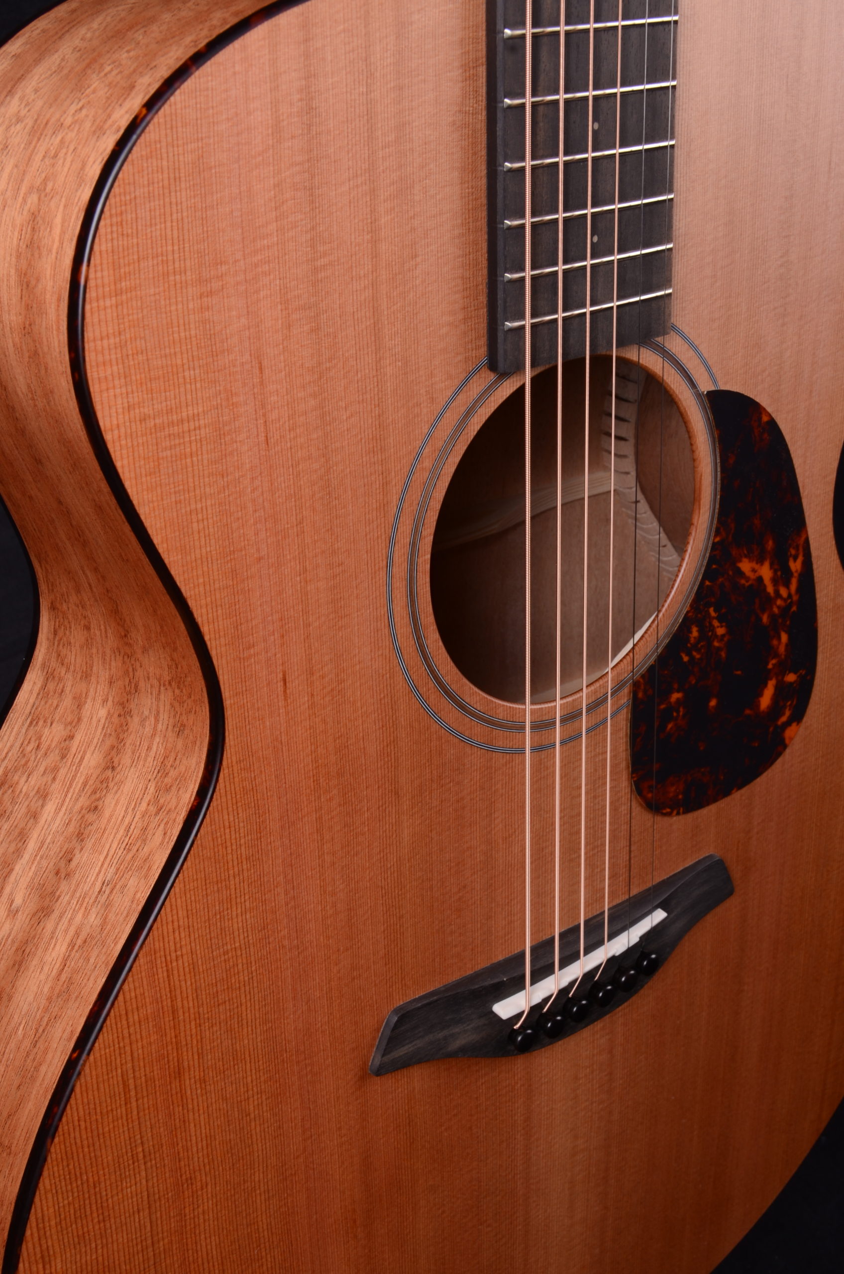 The Blue CM is our most affordable solid-wood instrument. The soundboard is made from high-grade western red cedar, and the back and sides feature high-quality African mahogany. Open-Pore Finish leaves wood pores exposed, which preserves the natural acoustic properties of tonewoods. The combination of these high-quality solid tonewoods and finish produces a beautiful musical sound across the entire tonal range with slightly pronounced lows.