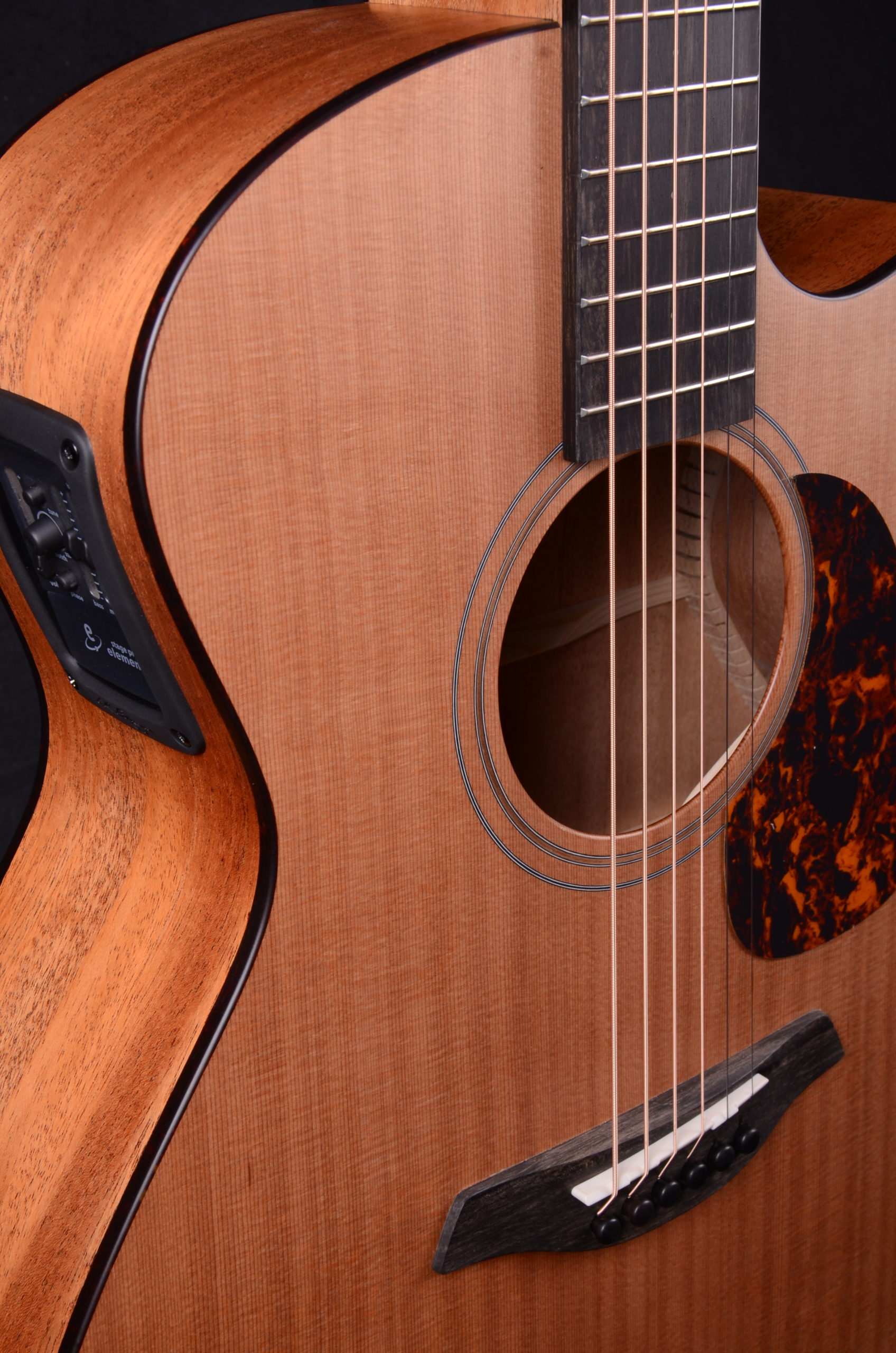 • Pickguard: Faux tortoise with transparent pickguard extension towards soundhole