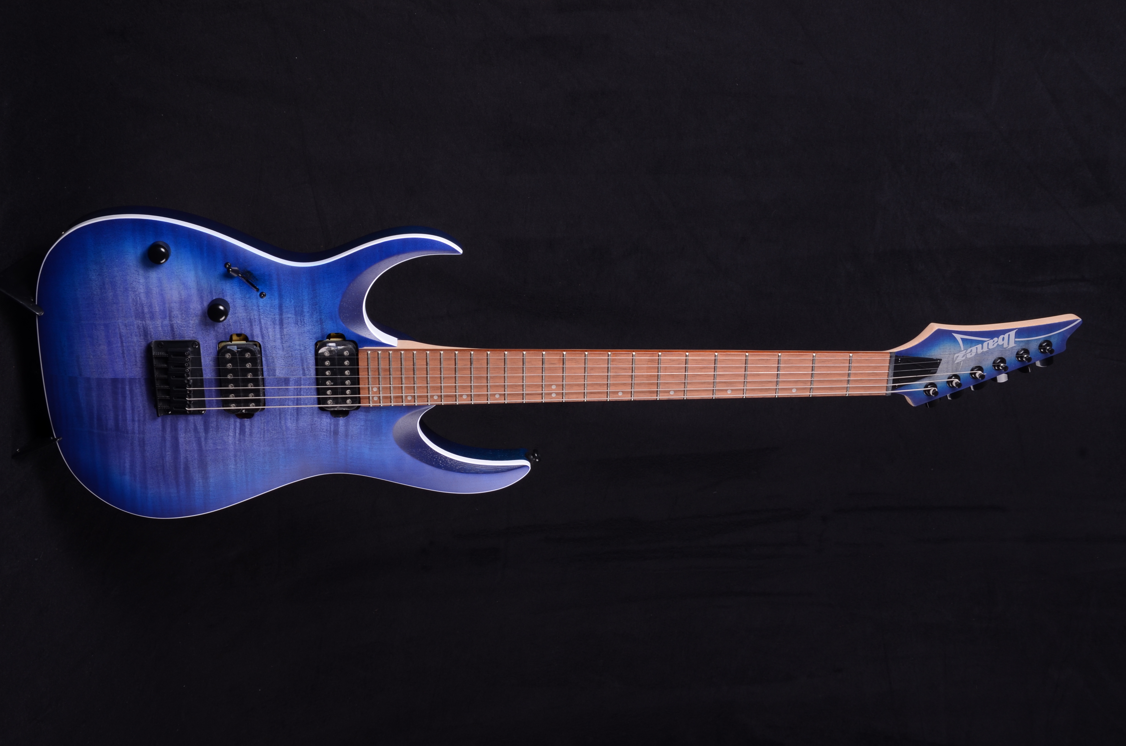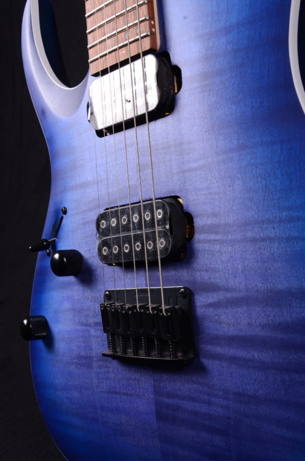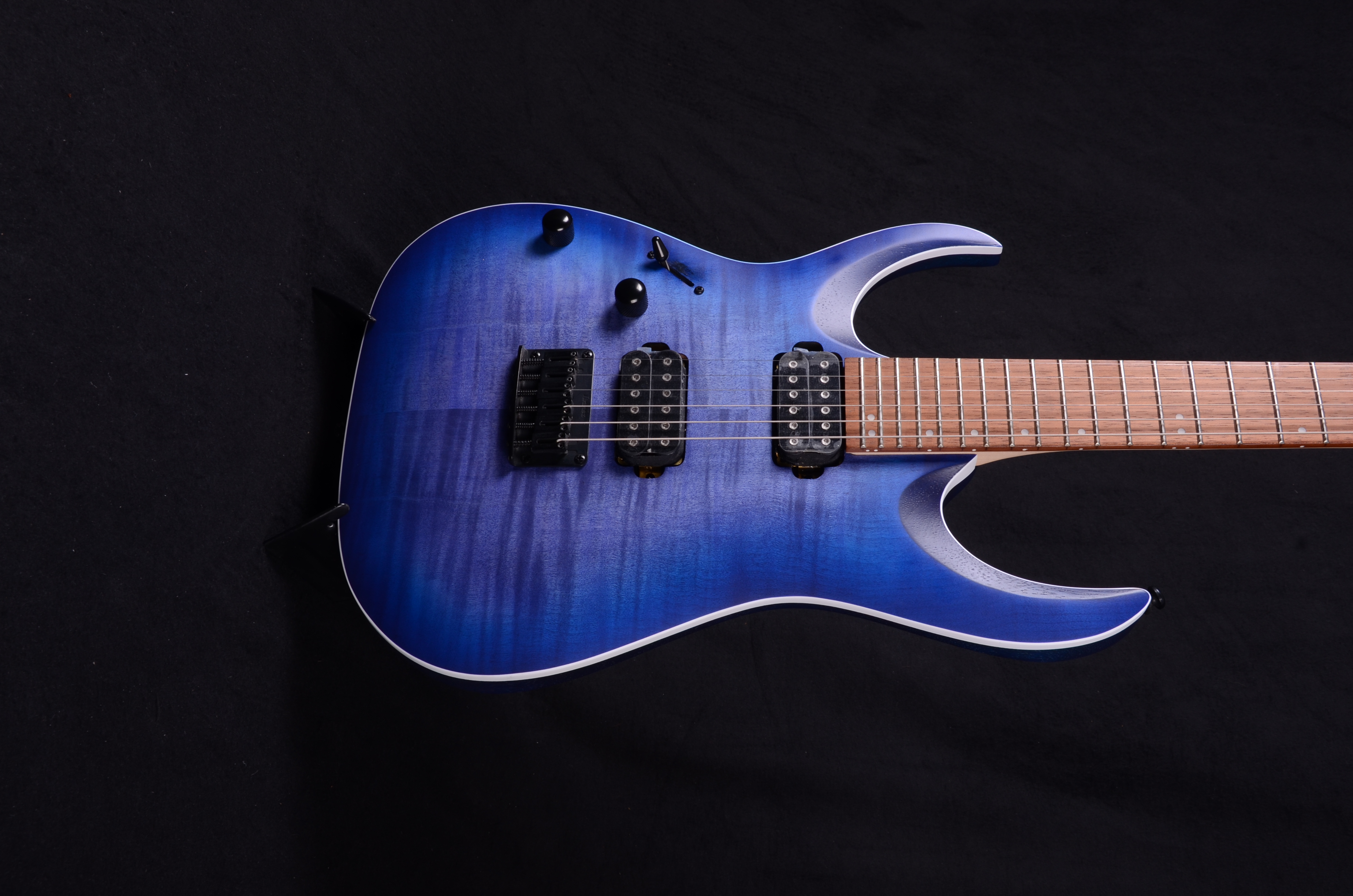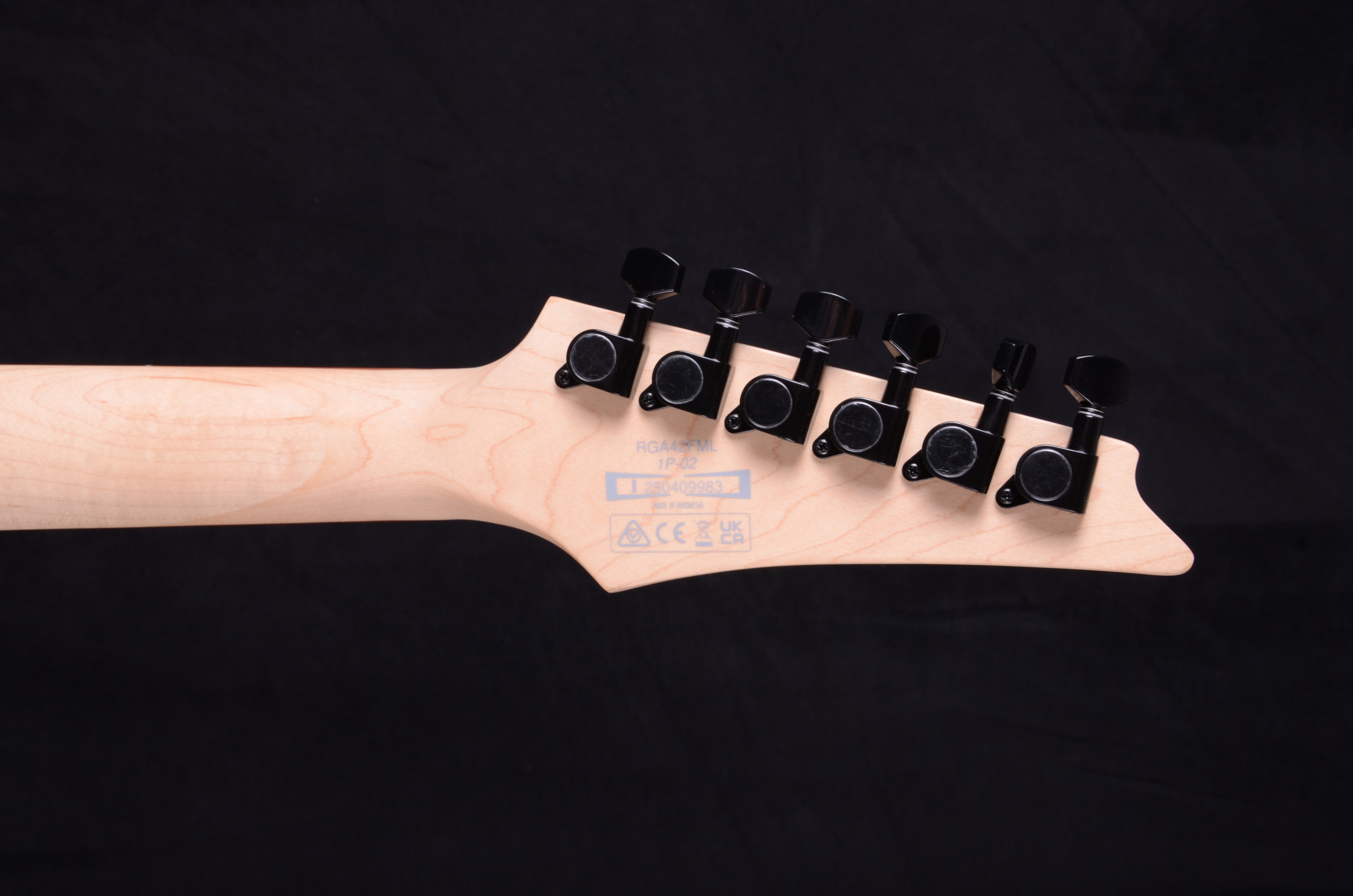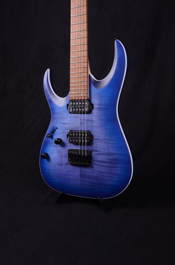 Die RGA42FM verfügt über einen Wizard III Ahorn Hals, ein Jatoba Griffbrett und eine geflammte Ahorndecke auf einem Meranti Korpus. Außerdem ist die Gitarre mit Quantum H-H Tonabnehmern und einem F106 Steg ausgestattet.