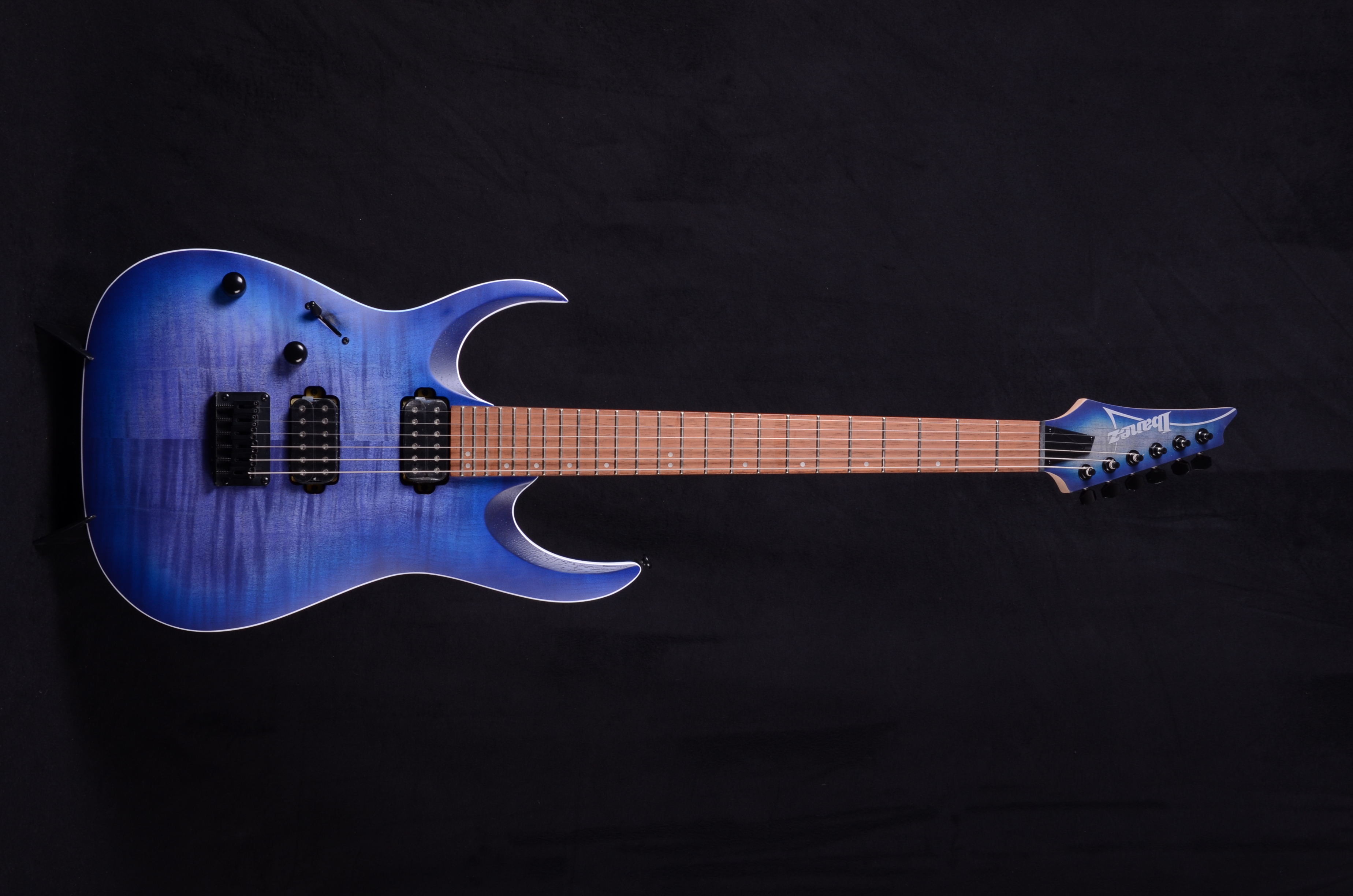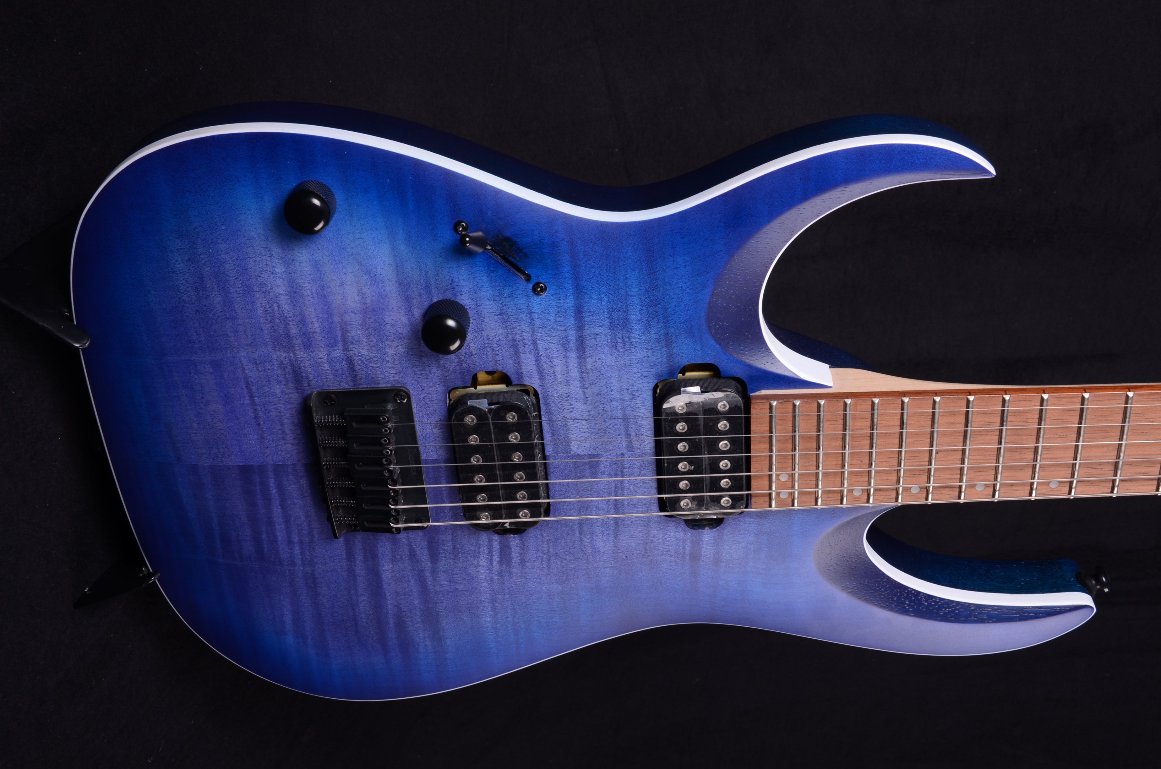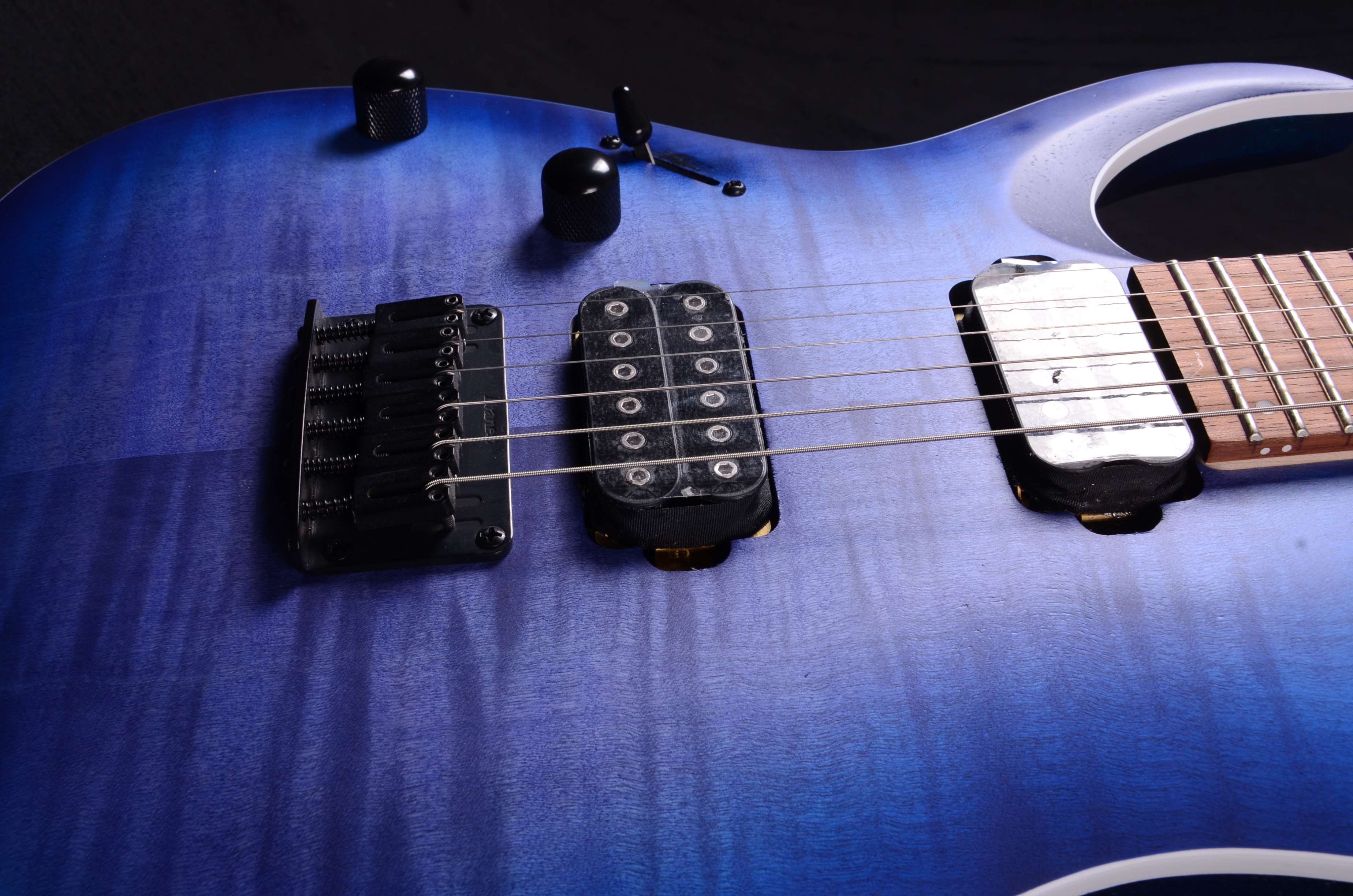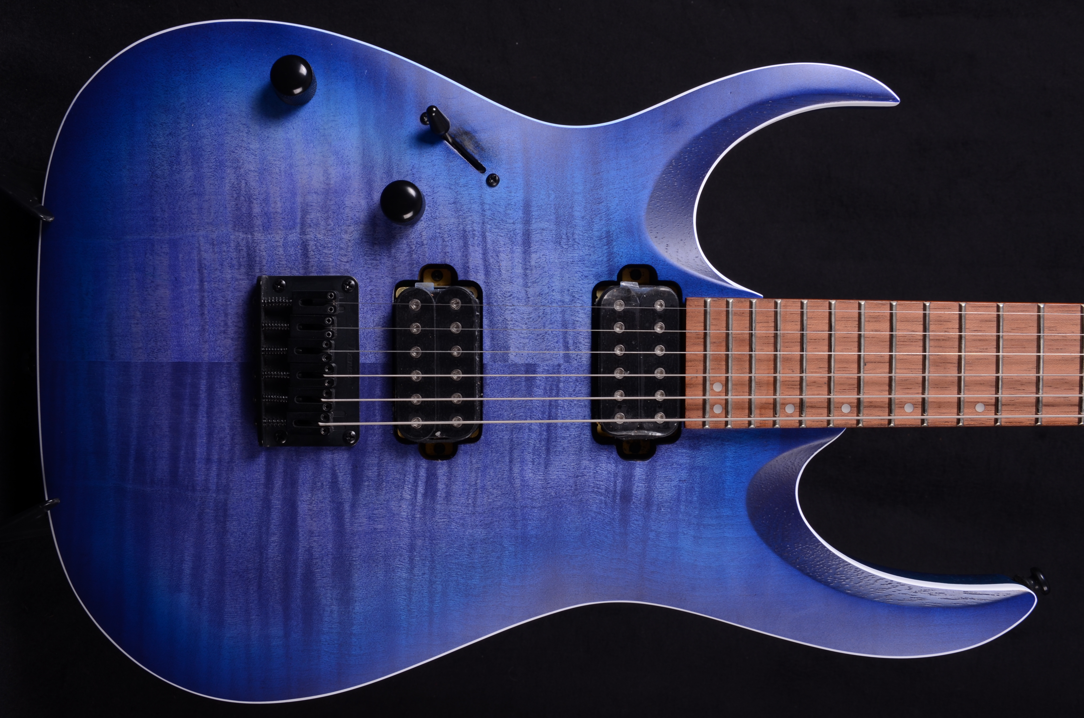 Die RGA42FM verfügt über einen Wizard III Ahorn Hals, ein Jatoba Griffbrett und eine geflammte Ahorndecke auf einem Meranti Korpus. Außerdem ist die Gitarre mit Quantum H-H Tonabnehmern und einem F106 Steg ausgestattet.