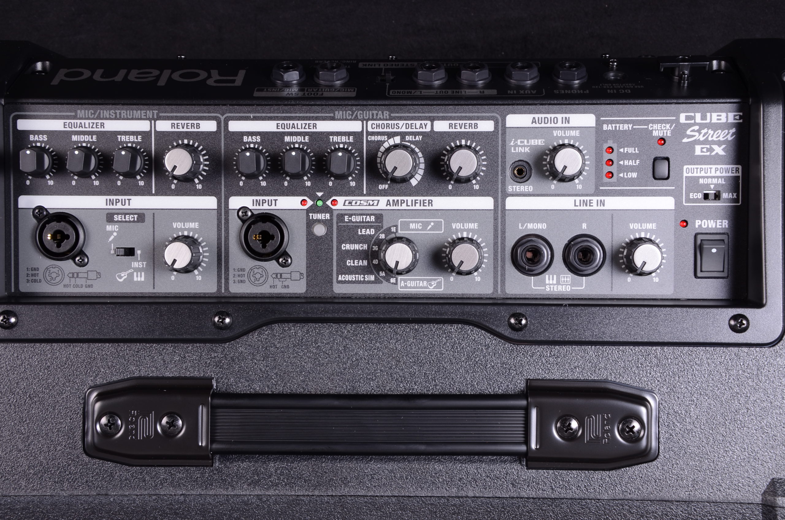 Mit dem CUBE Street EX bekommt der populäre mobile Amp ein Upgrade mit mehr Leistung, mehr Kanälen und mehr Vielseitigkeit. Der Stereo-Verstärker mit bis zu 50 Watt Leistung und einem 2-Wege- Wiedergabesystem (mit getrennten Bass- und Höhen-Lautsprechern) gewährleistet einen klaren, knackigen Sound für größeres Publikum. Vier unabhängige Kanäle liefern ausreichend Anschlußmöglichkeiten für eine Vielzahl von Mikrofonen und Instrumenten.