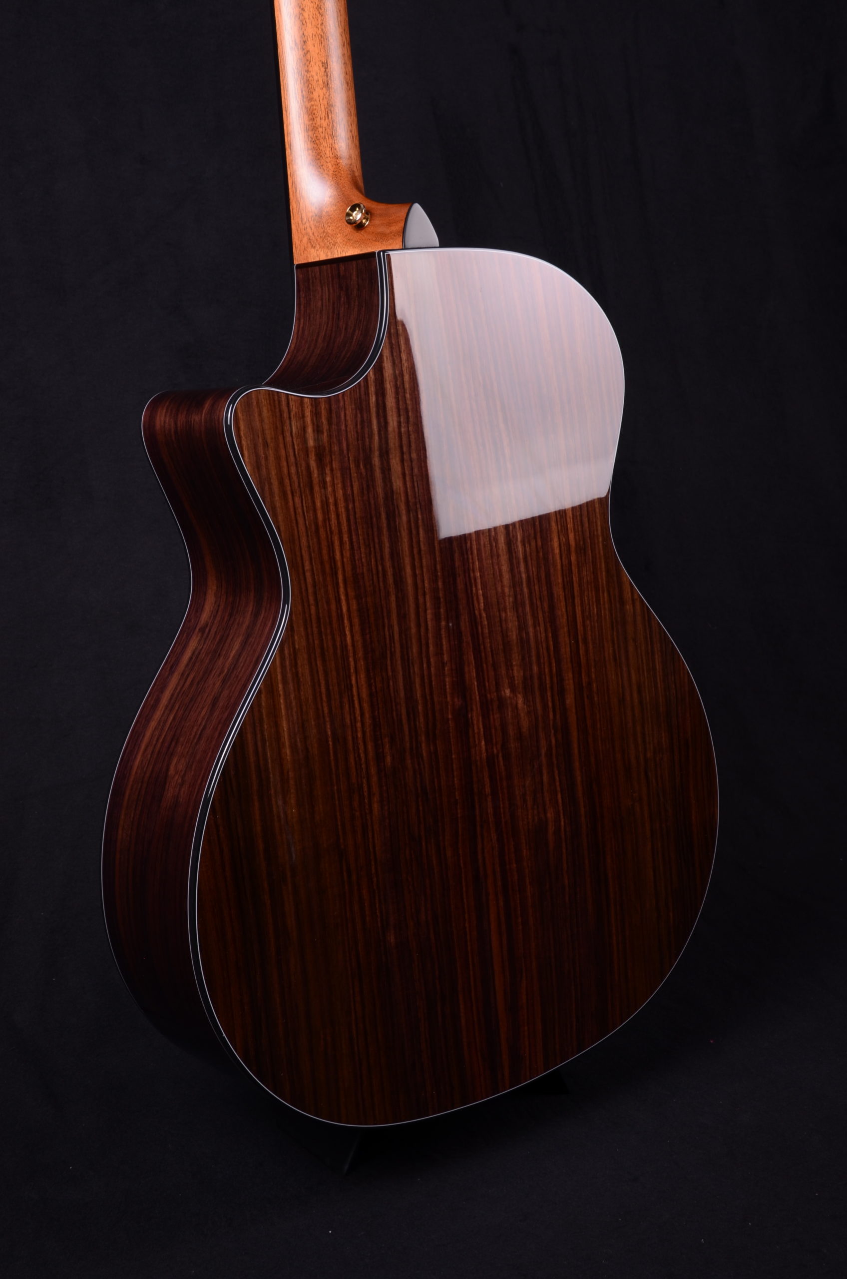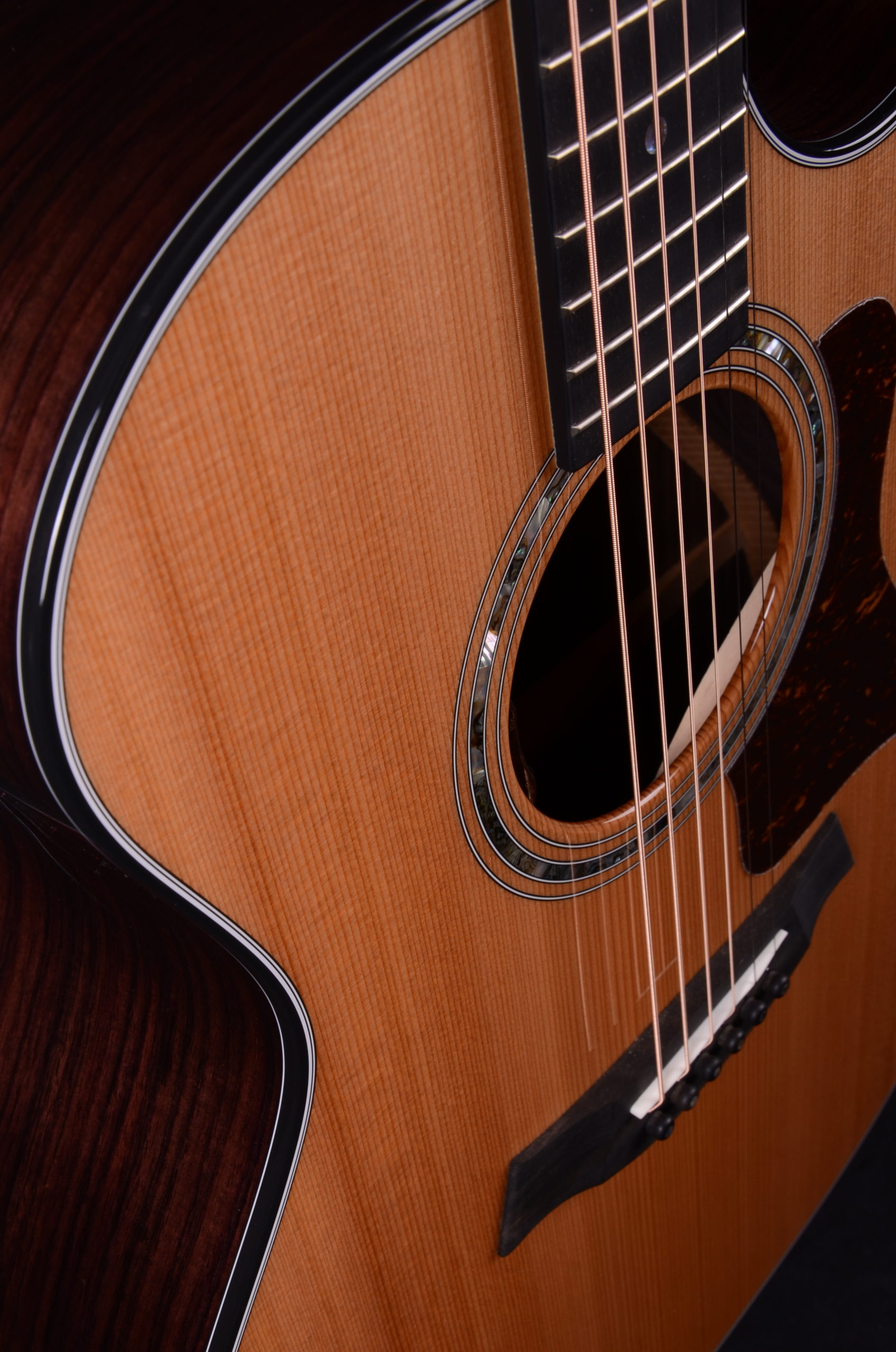 Built to honor the innovative spirit that drove Bob Taylor’s guitar designs dating back to the early years, the Legacy 714ce celebrates the Grand Auditorium body shape that Bob introduced to the world in 1994. This model boasts a tonewood pairing not currently found in the standard Taylor line: Indian rosewood back and sides with a Western Red cedar top, voiced with the same X-bracing pattern used in the first Grand Auditorium guitars. The result is an exceptionally warm, mellow response with remarkable touch sensitivity that doesn’t lose clarity in the treble range. Visually, this model reflects the understated aesthetic Bob preferred for his guitars of three decades ago, with appointments including black binding with black and white pinstripes, dot fretboard inlays in green abalone with a matching three-ring rosette, ebony bridge pins with green abalone dots, a faux-tortoiseshell pickguard, gold tuning machines, and a gloss-finished body paired with a satin-finished neck. The Legacy 714ce features LR Baggs Element VTC electronics and ships with a deluxe hardshell case.