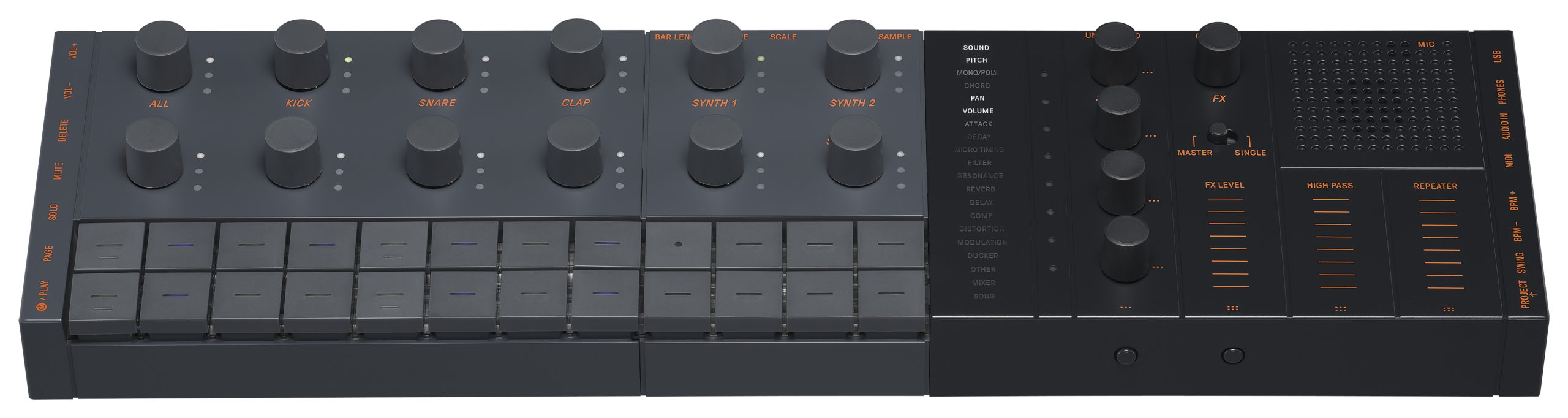- Drummaschine, Synth, Sampler, Sequenzer sowie USB MIDI- und Audio-Interface 24-Bit / 44.1 kHz